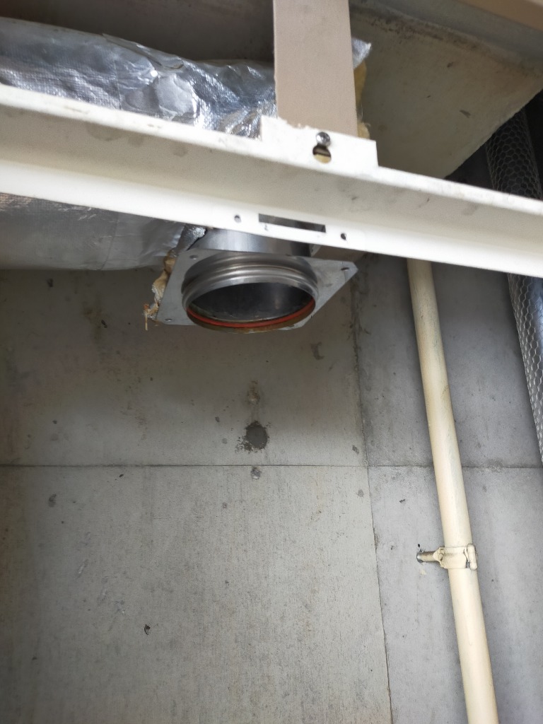 向かいのお宅との距離が60センチ以下なので上方排気カバー