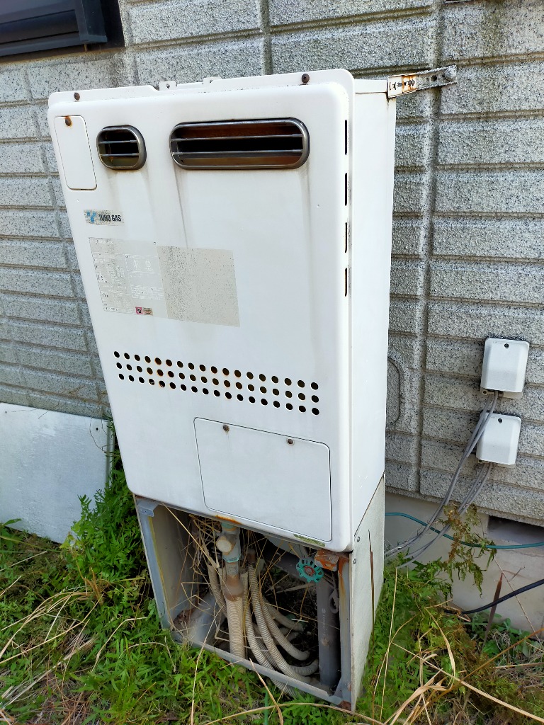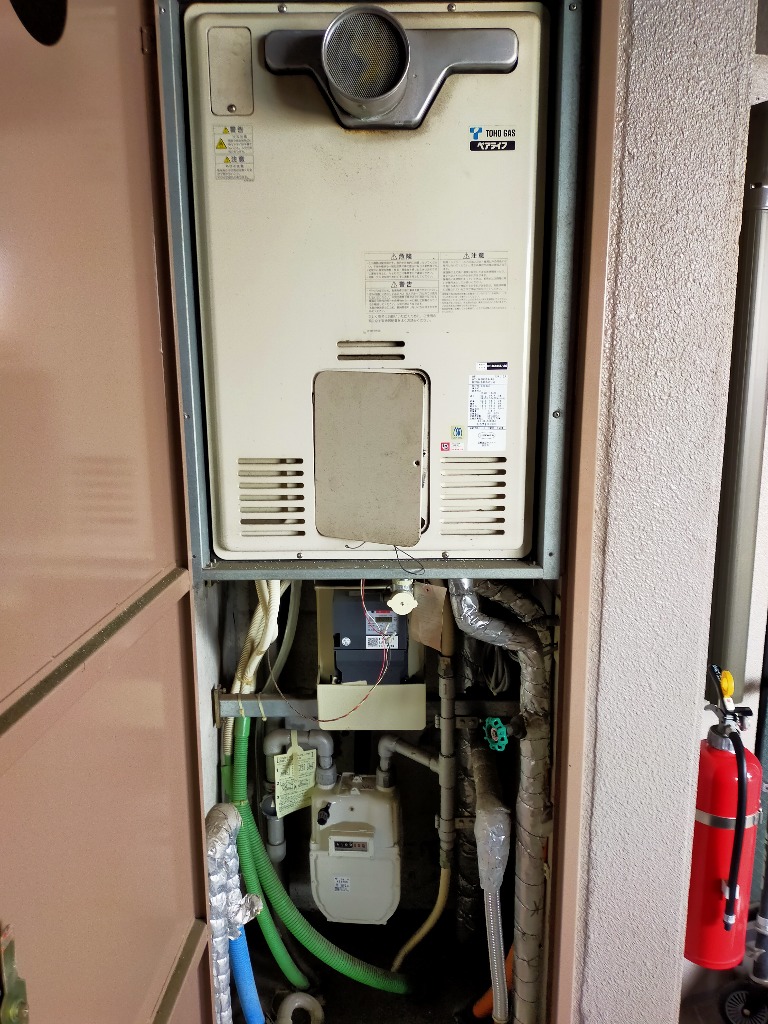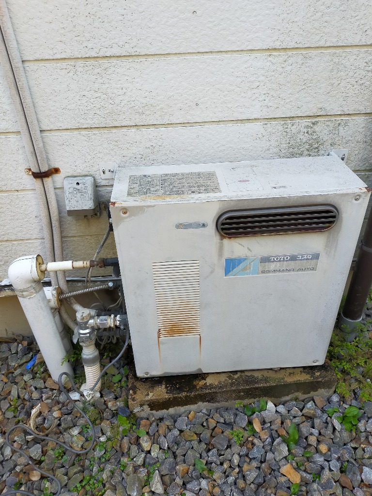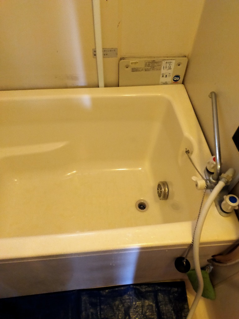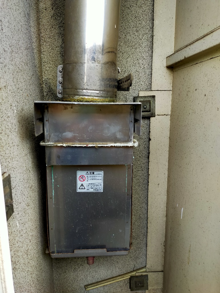 まずは風呂釜を手前に移動させると給湯器が現れます。