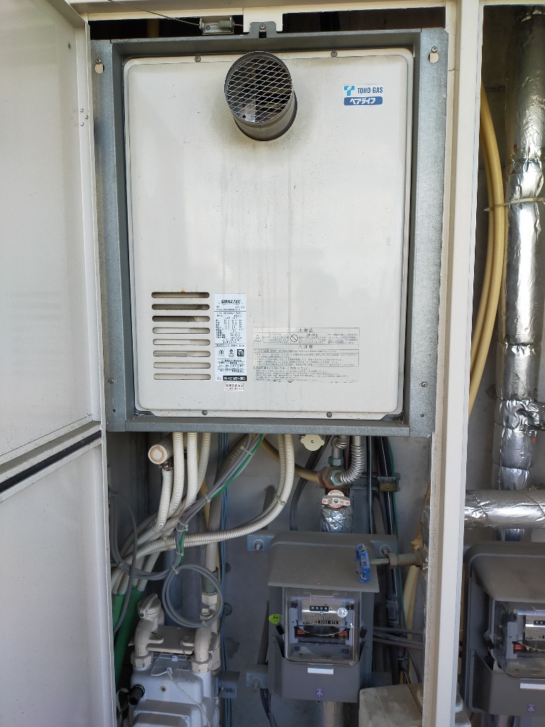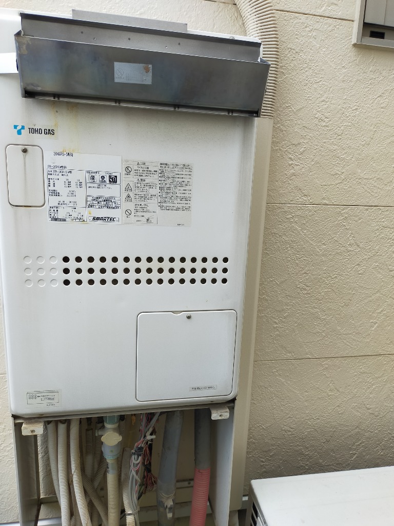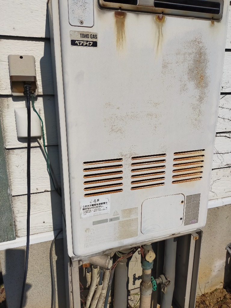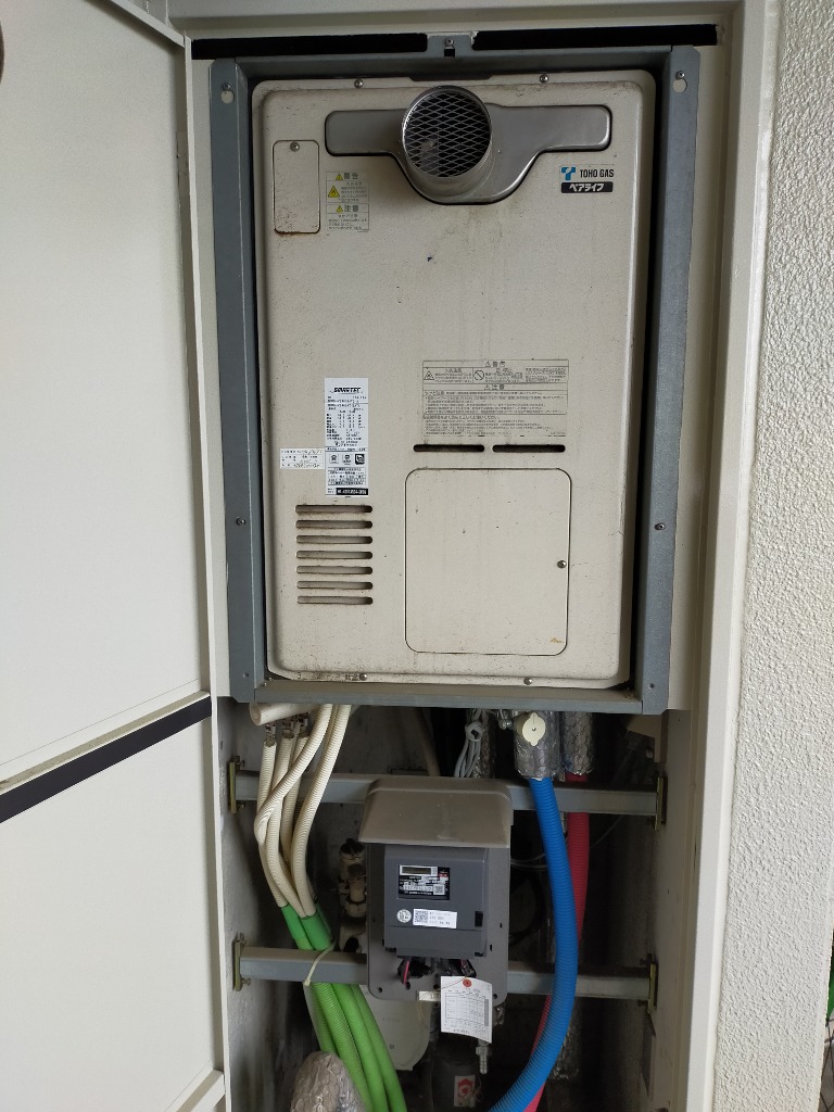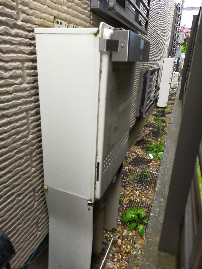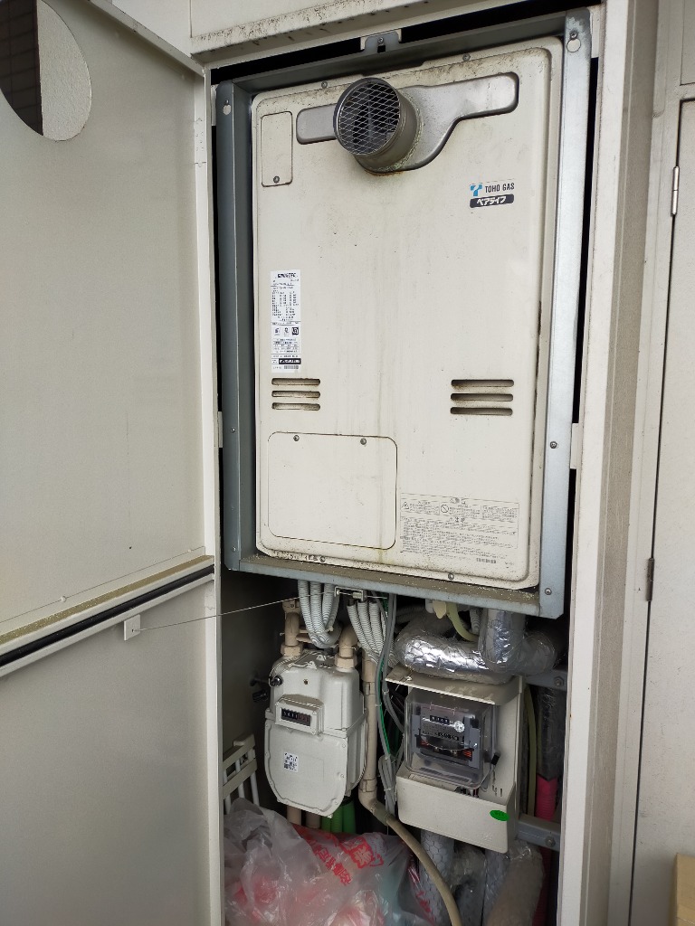 まずは風呂釜を手前に移動させると給湯器が現れます。