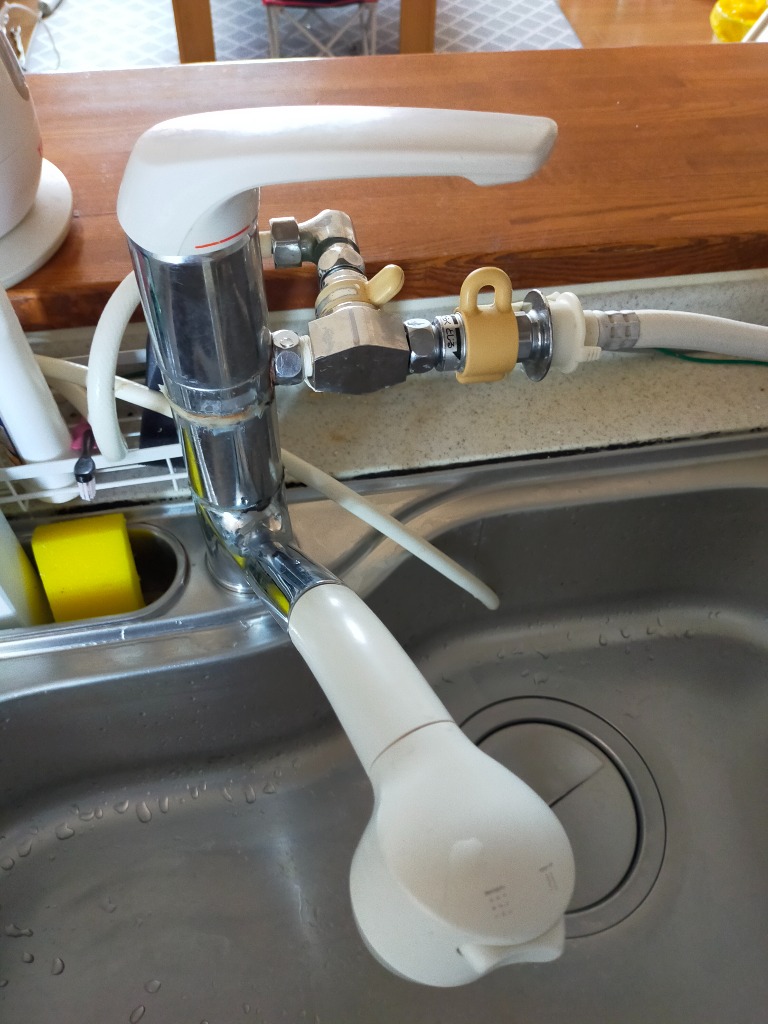 あるとのことで、ドラム洗濯機専用水栓への交換です