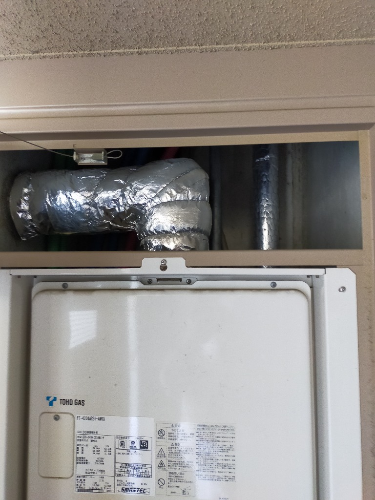 給湯器交換したら新しく配管、ガス管をつなぎます少し長めに施工しないとやり直しは、面倒なことになるので慎重にします。
